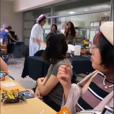 We partnered with the Diversity Department on campus to help promote the screening of a student-created short film about some of the graduating seniors, 40 years in the future looking back at college life with find memories. As a non-traditional student knowing I'm 8 years older than them, I fully committed to the bit, all day long. I spoke in an old lady voice and had Werther's in my purse.