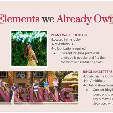 Before the semester began, I knew I had to learn more about commencement. I knew that the event space was already reserved, along with seating, set up, take down, security, and the day-of-graduation ceremony schedule set as a copy-and-paste from last year, so what exactly was the goal? I met with staff in alumni relations and anyone who had any hand in commencement to learn as much as I could about Ringling College's traditions and expectations for the event.