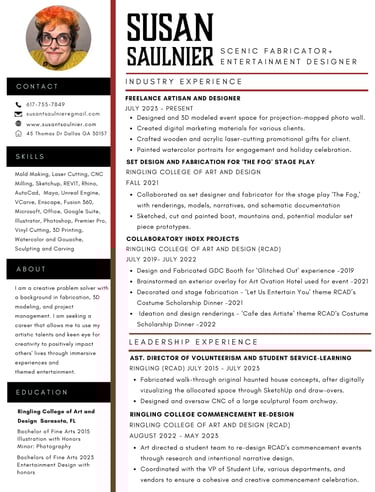 I received my B.F.A. in Illustration and a minor in Photography in 2015 from Ringling College of Art and Design (RCAD). I immediately jumped into the role of Coordinator (later Assistant. Director) of Volunteerism & Student Service Learning. Later, I simultaneously started another Bachelor's Degree with a new major, Entertainment Design. Why not a master's degree? The college does not offer Master's programs and with the brand new major, there were no 'senior level' classes to jump into; my classmates and I were creating it. I graduated in May of 2023 and left my position a month later to pursue my dream of creating art and improving the world along the way.