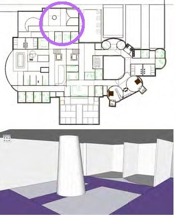 All spaces follow the U. S. Department of Defense Occupational and Physical Therapy (2017) guidelines.