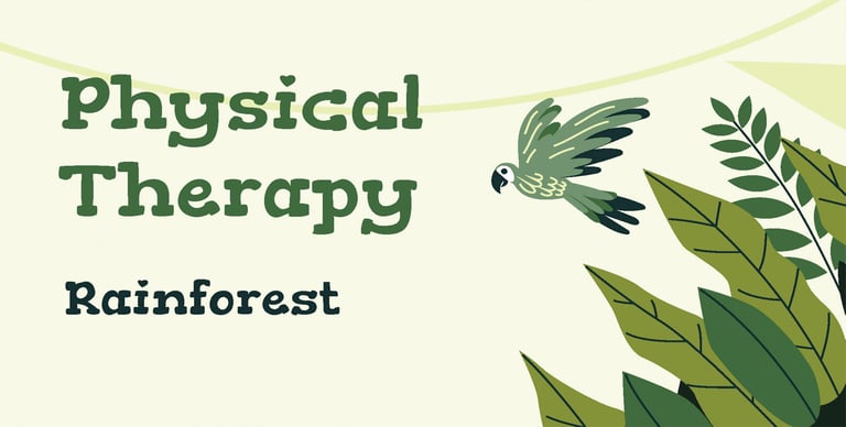 On the west side of Appointment Play is the physical therapy rainforest. The rainforest is home to a two-story window, helping to blend the interior jungle space with the surrounding real-world flora and fauna.