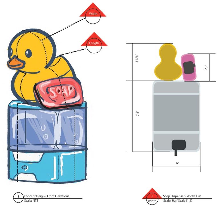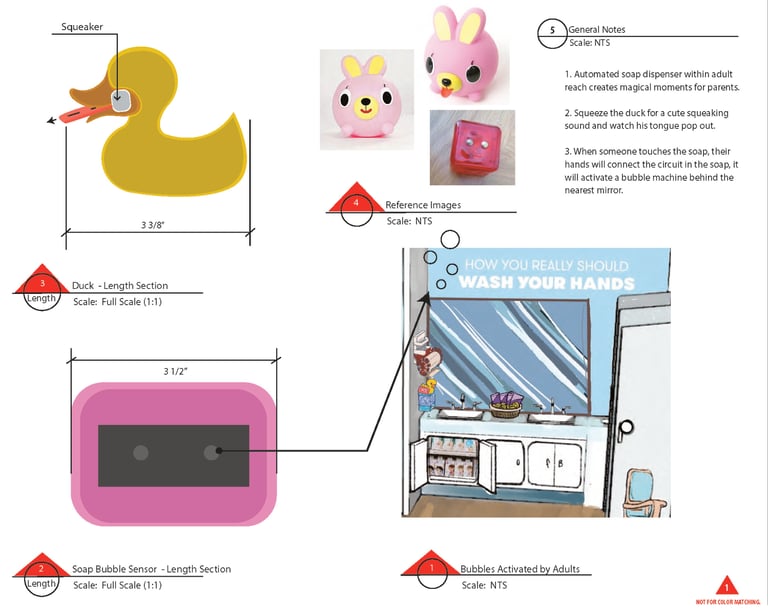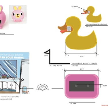Below: Design Intent documentation of interactive soap and towel dispensers.
