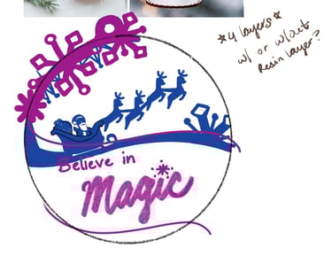The inspiration board for the ornament and my sketch and thought process on ProCreate.