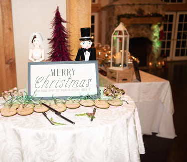In leu of a guest book, I designed and laser cut blank ornament for our guests to write their names and advice and/or well wishes.