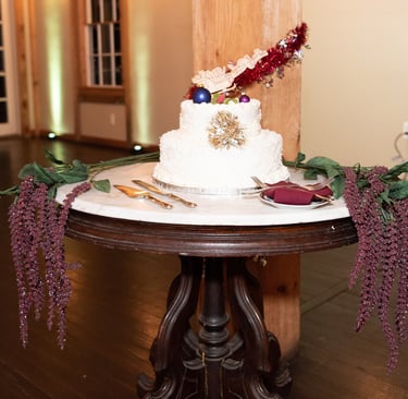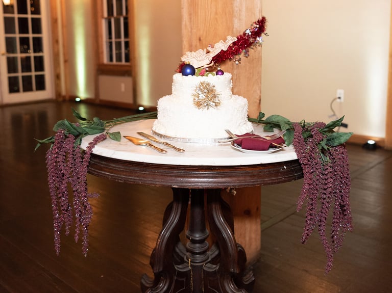 Photo of the cake from the wedding with the topper.