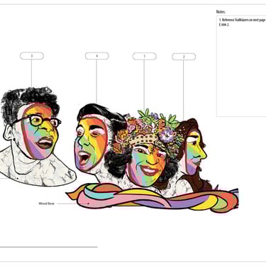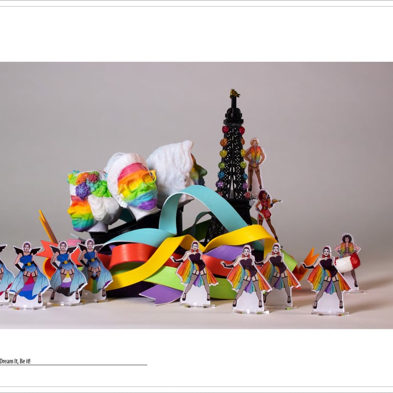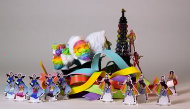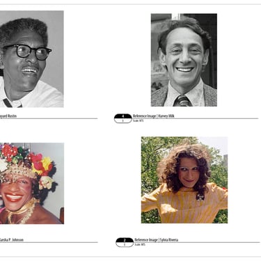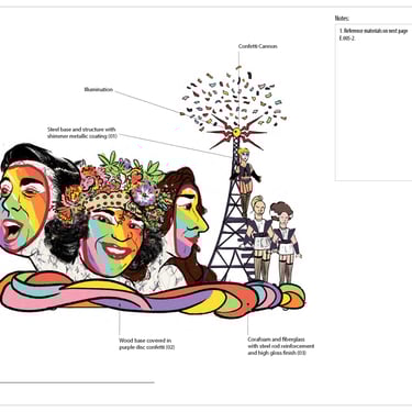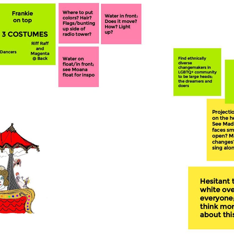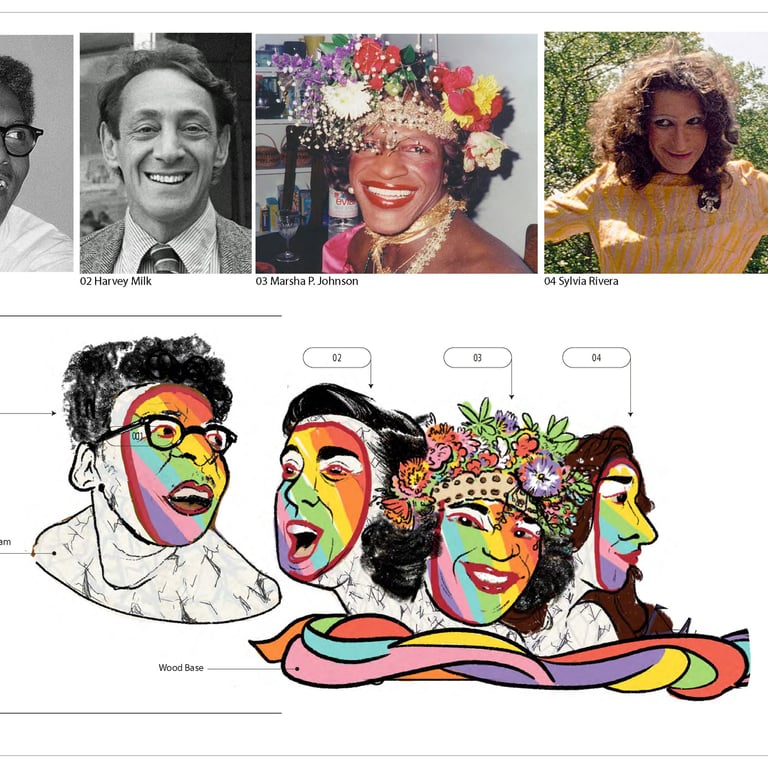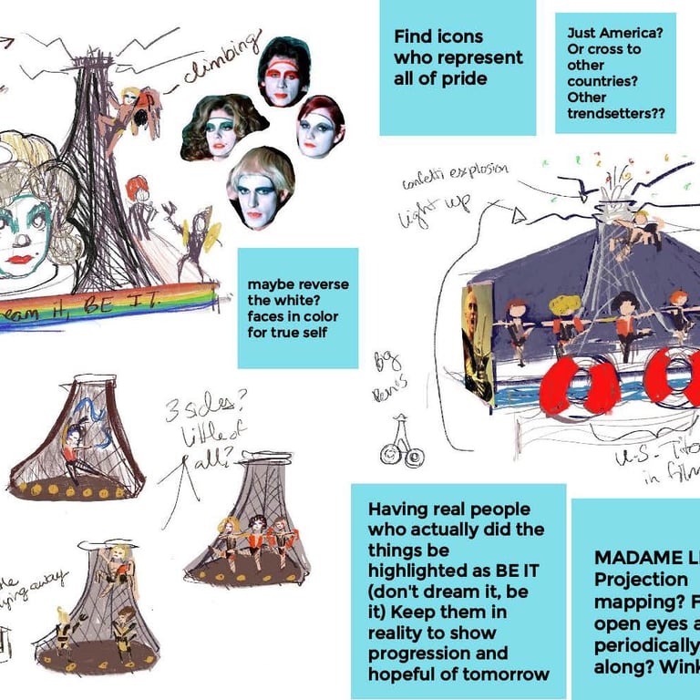 Above: My team's float, highlighting Bayard Rustin, Harvey Milk, Marsha P. Johnson, and Sylvia Rivera. All are depicted in the marble statues like the film, and their faces painted in full rainbows, representing them braking the mold and being their true selves.