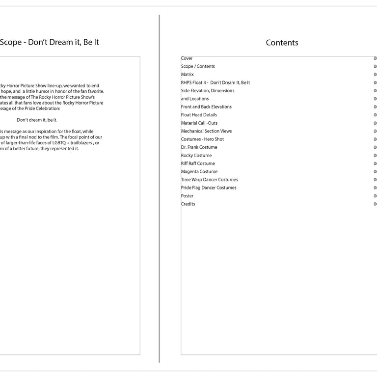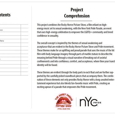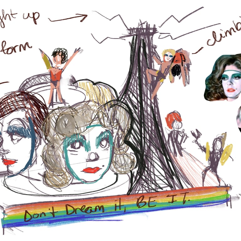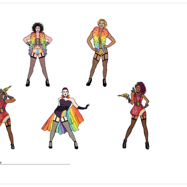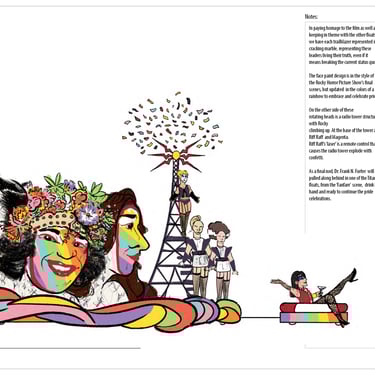 A group project where our class of 11 came together to agree on the theme of sexual liberation through parts of the body. Each float represents a major song from the film, with Time Warp dancers between each float. My group was the final song, Don't Dream It,-Be It!