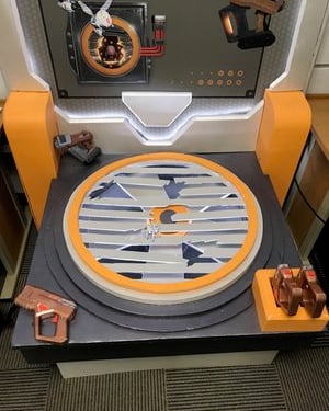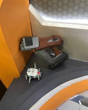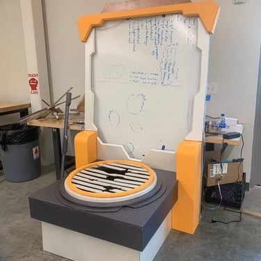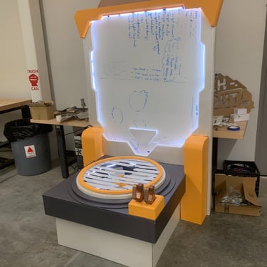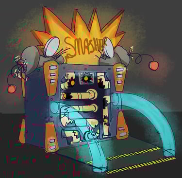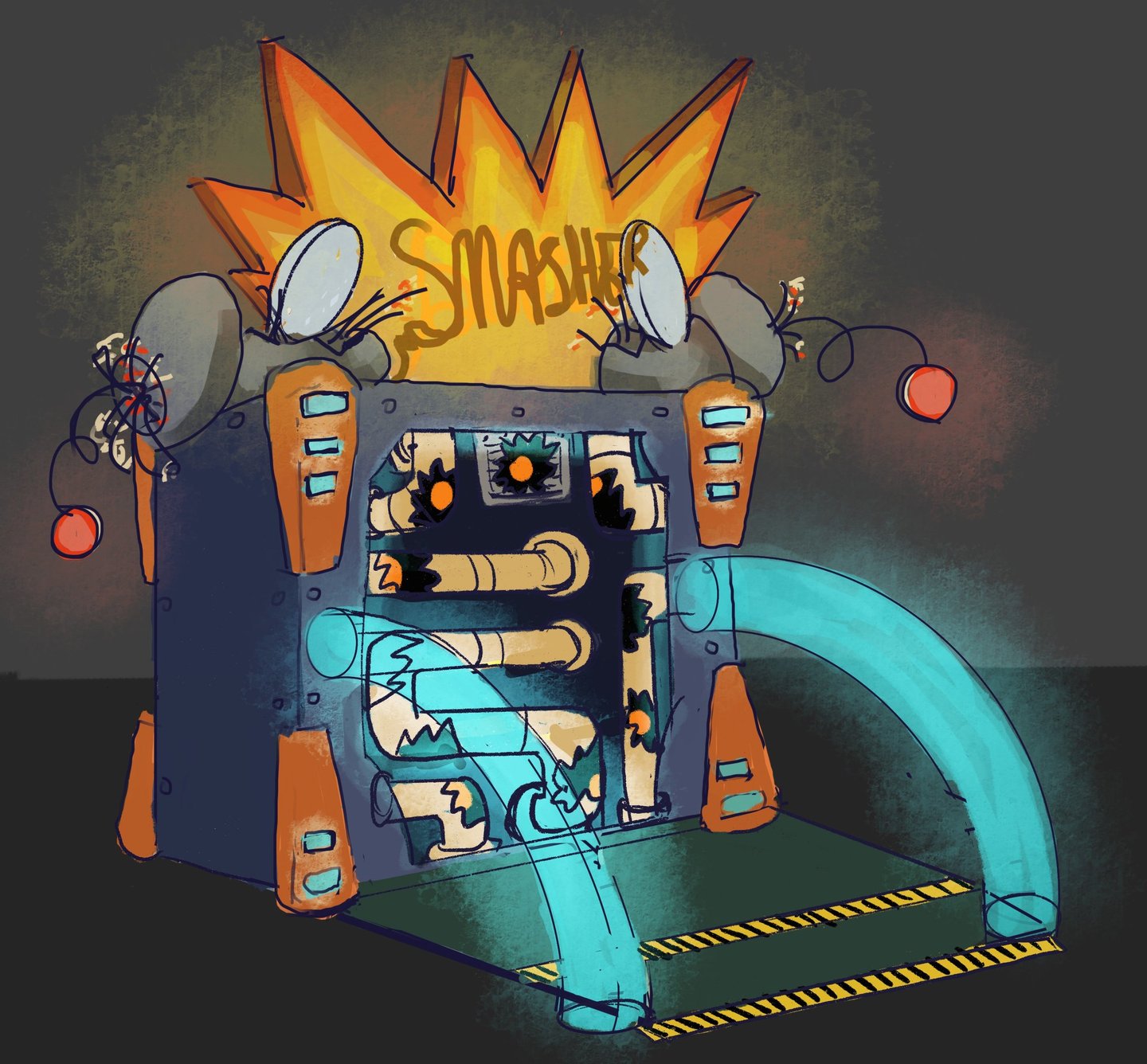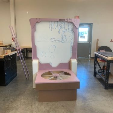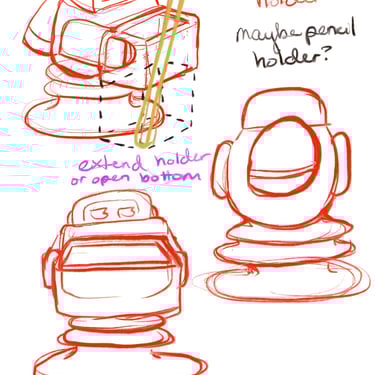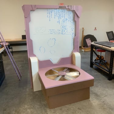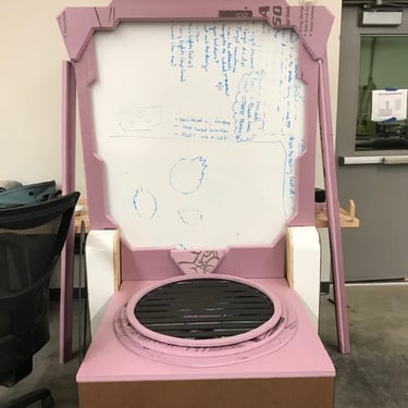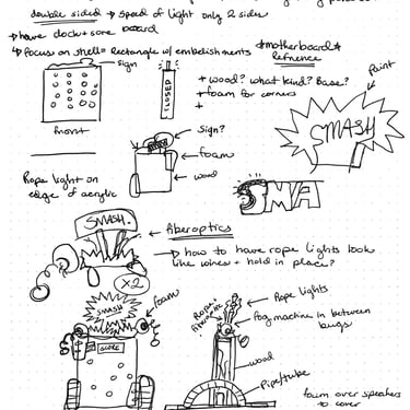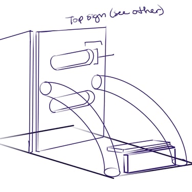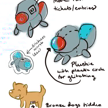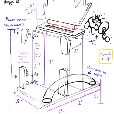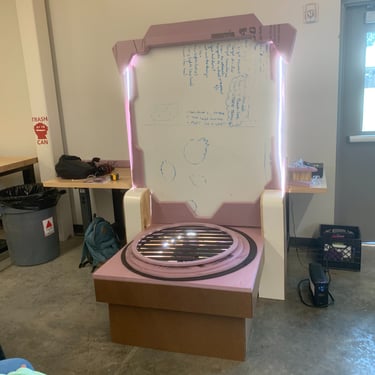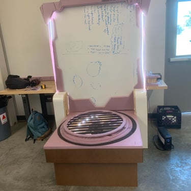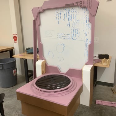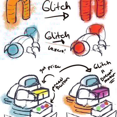 After not finding a pre-existing and affordable laser/duck shooter game and only being art students at an art school (AKA no engineering or mechanic students who could help us build and understand the game) and being pressed for time, I pitched this re-worked sketch to the team and after some discussion, we pivoted to this version. We used and re-skinned a pre-existing laser-shooting-bug-game to best fit our Glitched Out min-game experience.