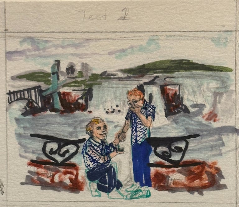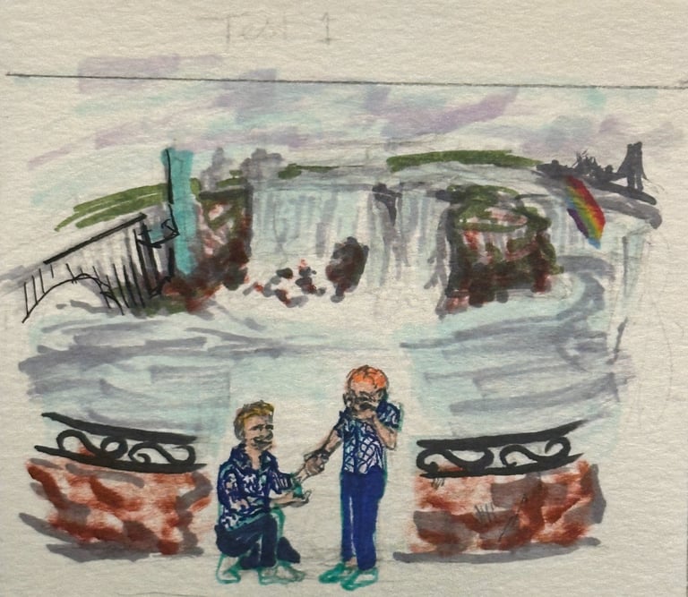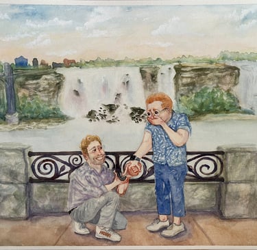 I was commissioned to watercolor paint the moment Adam and Riley got engaged as a gift to the grooms.