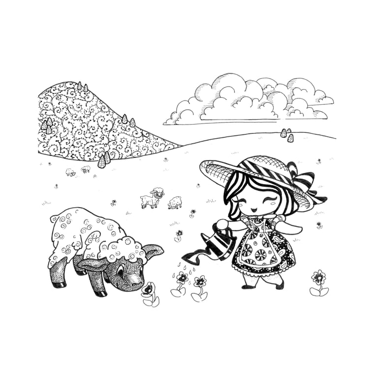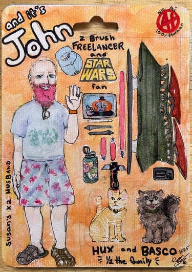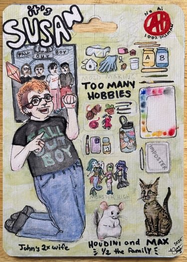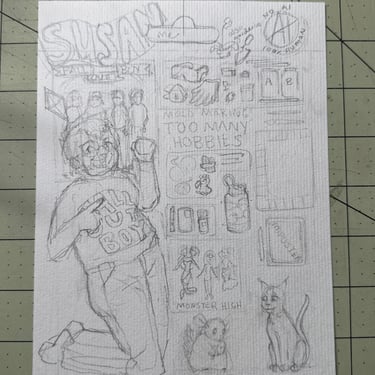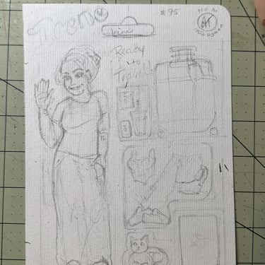 Hand-drawn and painted in watercolor, gouache, acrylic, and markers.