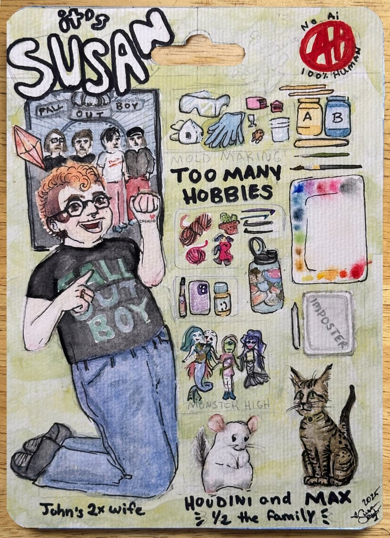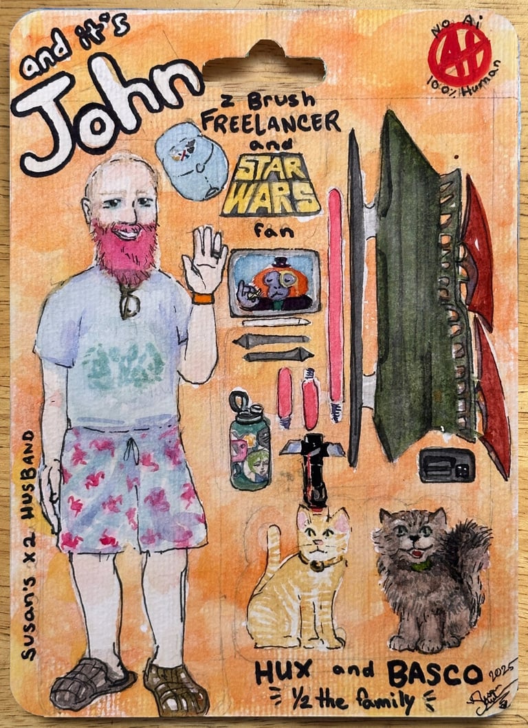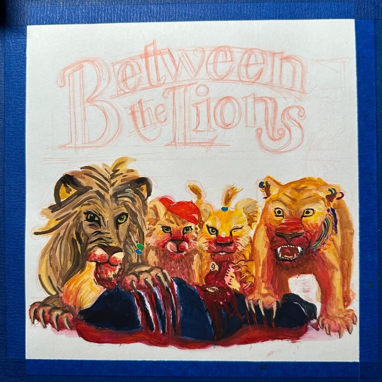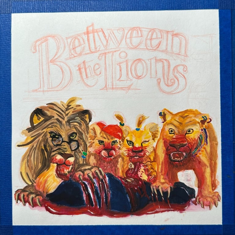 When PBS and WGBH were targeted for defunding, I was inspired seeing illustrations of my favorite childhood characters protesting and fighting to keep their channel alive and funded. I immediately thought this play on Between the Lions and expected to see it or something similar, but I never did. I am a blue dot in a certain bleach blonde, badly-built, butch body's district and the nearest No Kings Day protest wasn't accessible for me, so I spent the day working on this gouache painting instead.