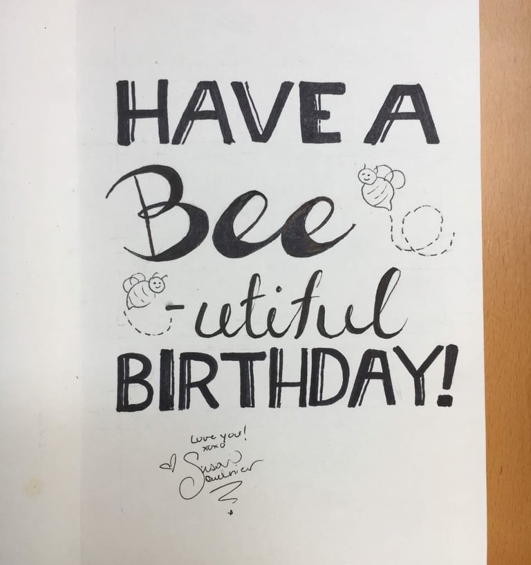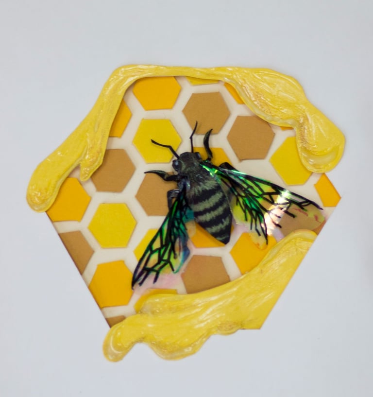 I learned that a friend of mine at an old job had a birthday at the end of the week, and I wanted to make them something special. They love bees, and I learned that their father was a beekeeper; I knew the pun but wanted to create something with it. I think I whipped this out in a few hours, and I was really proud of my bee wings and hot glue honey.