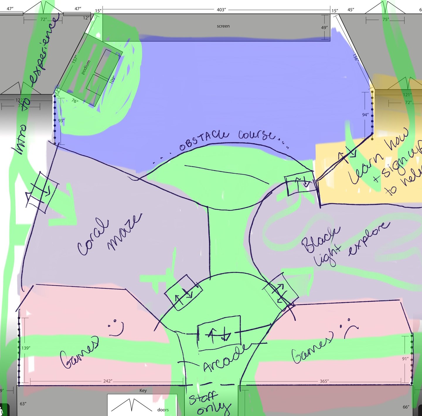 Top-down of the entire space and activities. Explanation of spaces can be seen in Documentation & Pitch section.