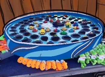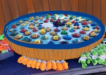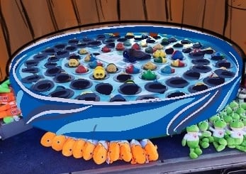 Magnet fishing game to demonstrate the effects of over-fishing. The left represents fishing in the 1920's, and the right represents fishing in the 2020's.