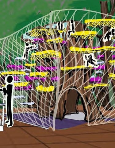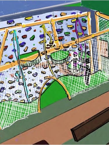 Depending on the level of challenge and exercises approved by guides, adventurers can use a rock wall, net climb, elevator, or stairs up to the second floor to take a ride down on the Brazilian Rainbow Boa slide.