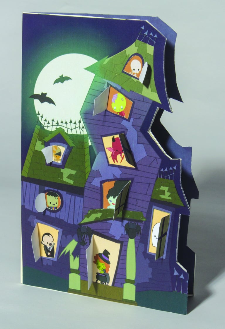 I have always enjoyed section views of buildings. I loved getting lost in the rooms and all of the little clutter in all of the spaces, and the more the world is filled, the better. I also love interactive art and the whimsy that comes with childhood flip books, and decided to make the card that I had always wanted to see.