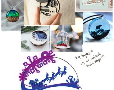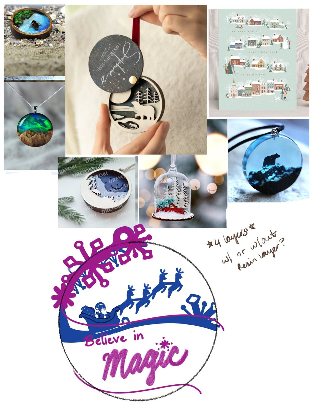 The inspiration board for the ornament and my sketch and thought process on ProCreate.