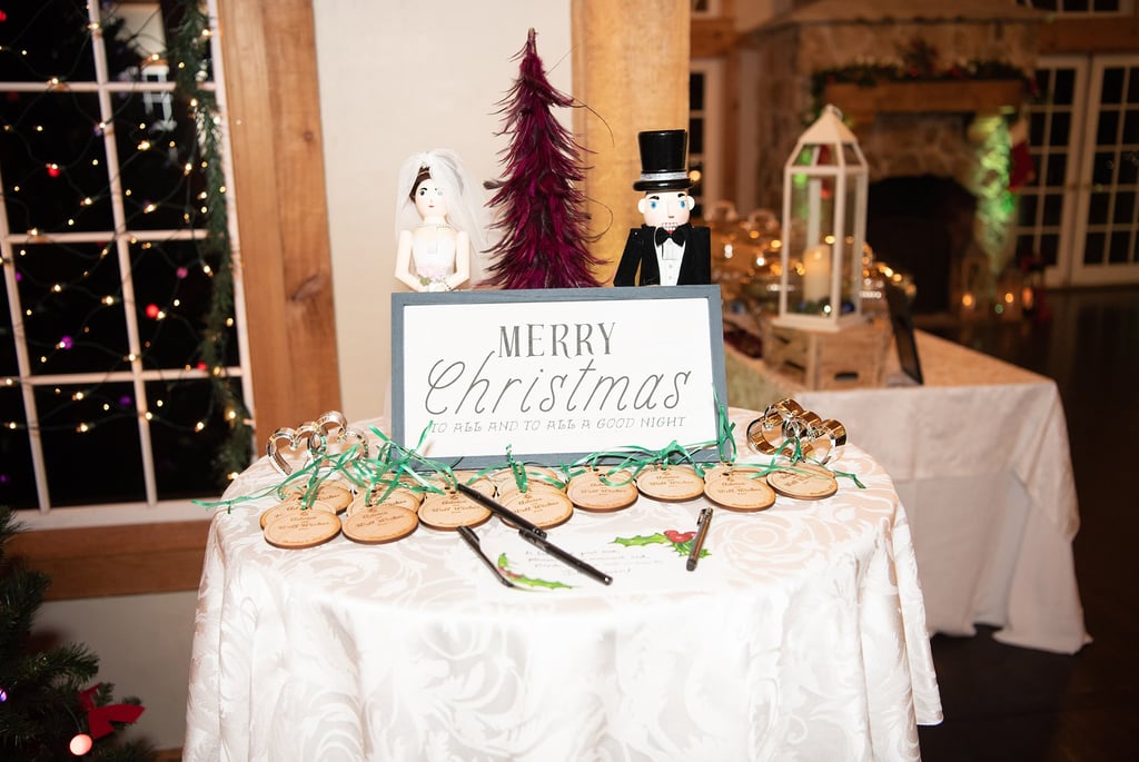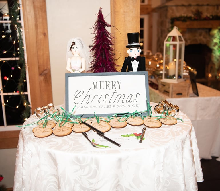 In leu of a guest book, I designed and laser cut blank ornament for our guests to write their names and advice and/or well wishes.