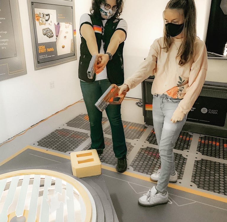 Ringling College Virtual Reality Senior Thesis and Flight School Partner, Glitch Out VR experience was scheduled to attend South by South-West (SxSW) and have a booth. Unfortunately, it was for the 2020 convention and due to the COVID-19 pandemic, the Glitch Out booth only lived on the college campus.