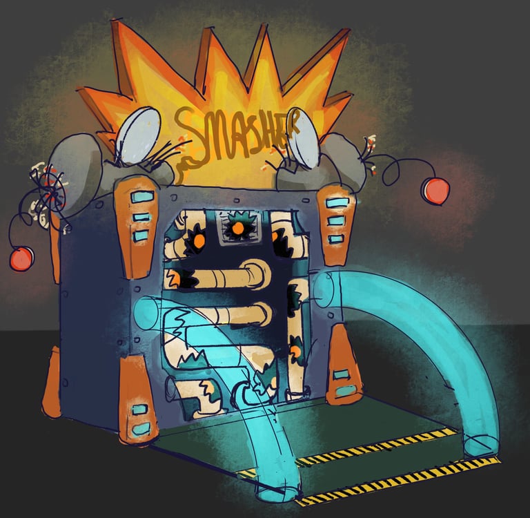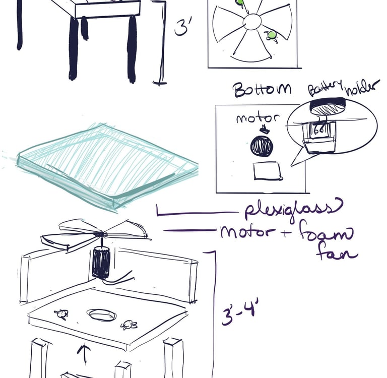 After not finding a pre-existing and affordable laser/duck shooter game and only being art students at an art school (AKA no engineering or mechanic students who could help us build and understand the game) and being pressed for time, I pitched this re-worked sketch to the team and after some discussion, we pivoted to this version. We used and re-skinned a pre-existing laser-shooting-bug-game to best fit our Glitched Out min-game experience.
