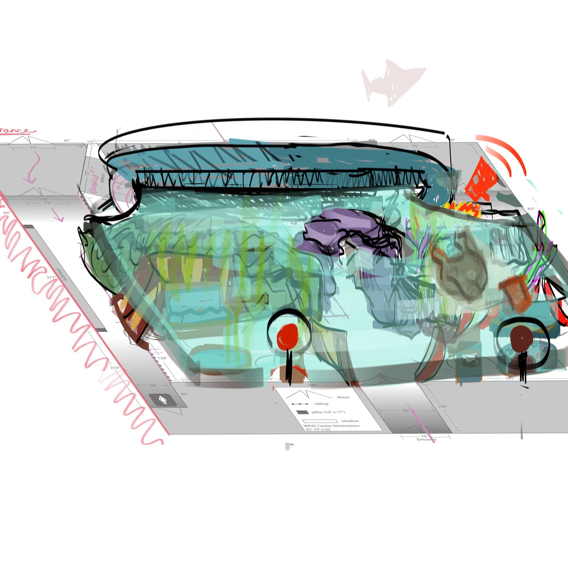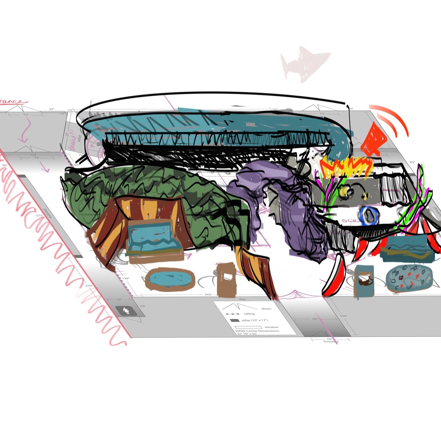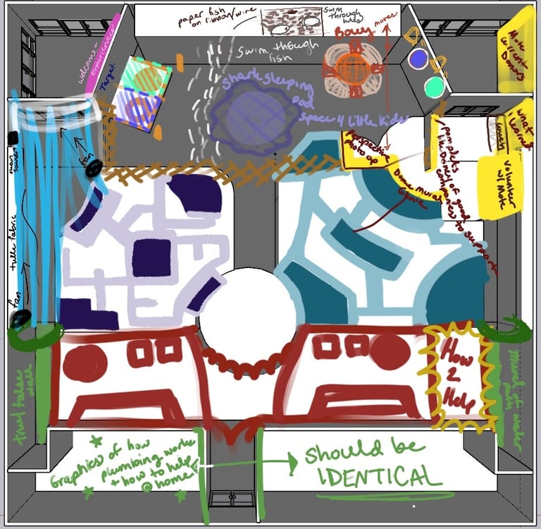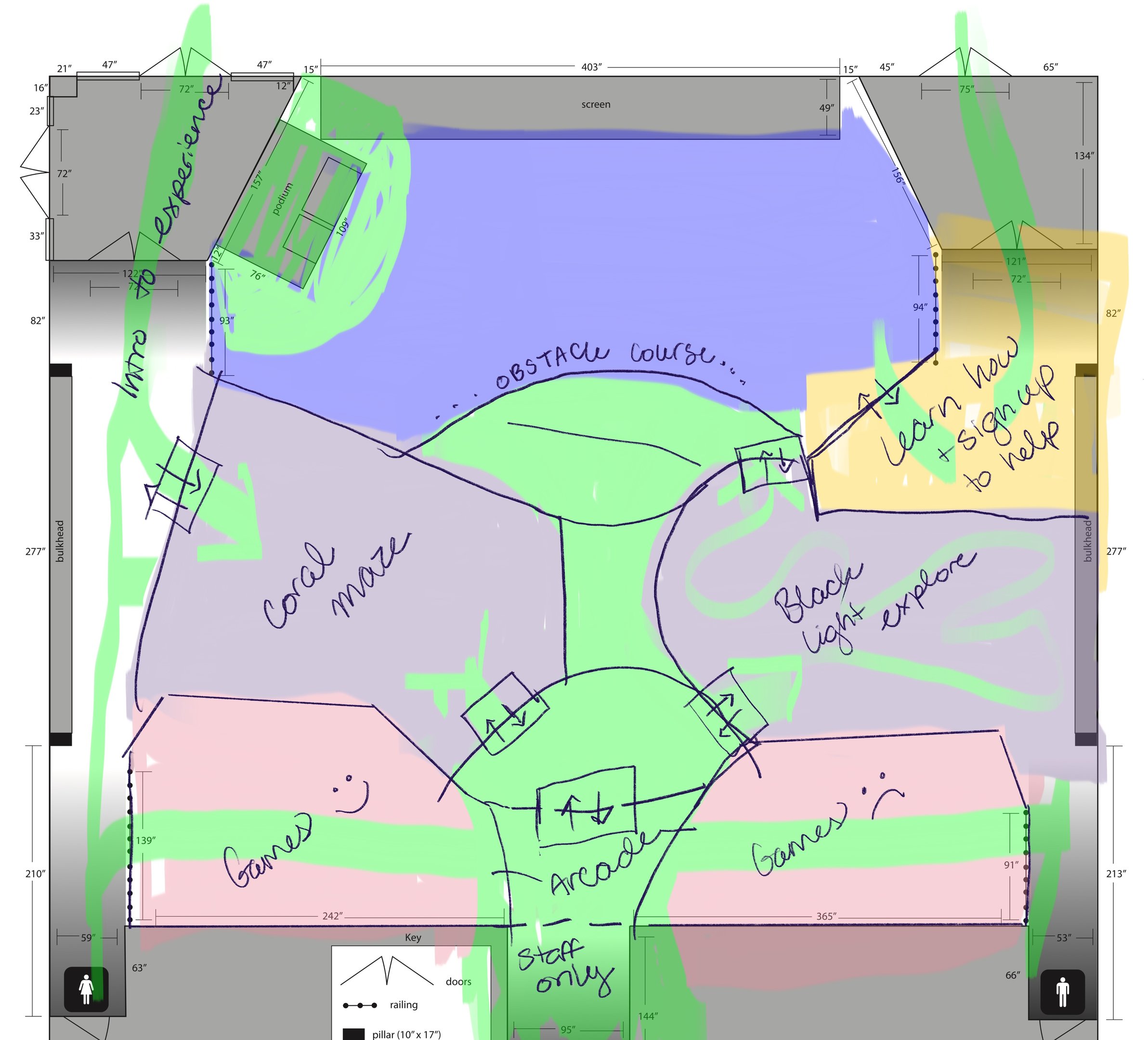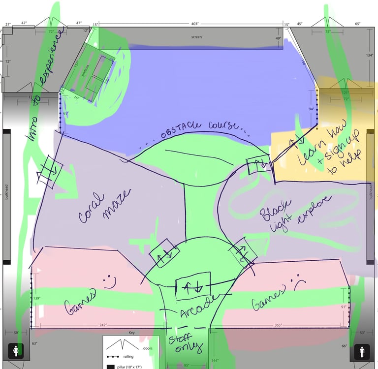 Top-down of the entire space and activities. Explanation of spaces can be seen in Documentation & Pitch section.