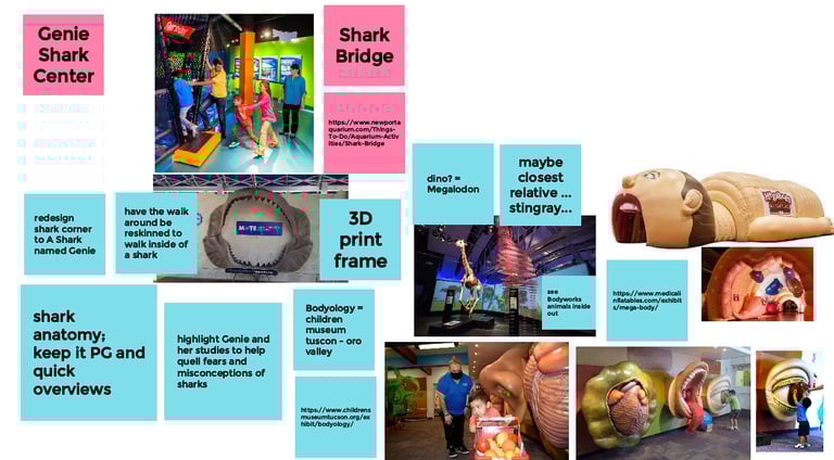 The largest space would be a comparison of ocean quality of 1920s vs. 2020s, highlighting the effects we as humans are having on the oceans, through carnival games.